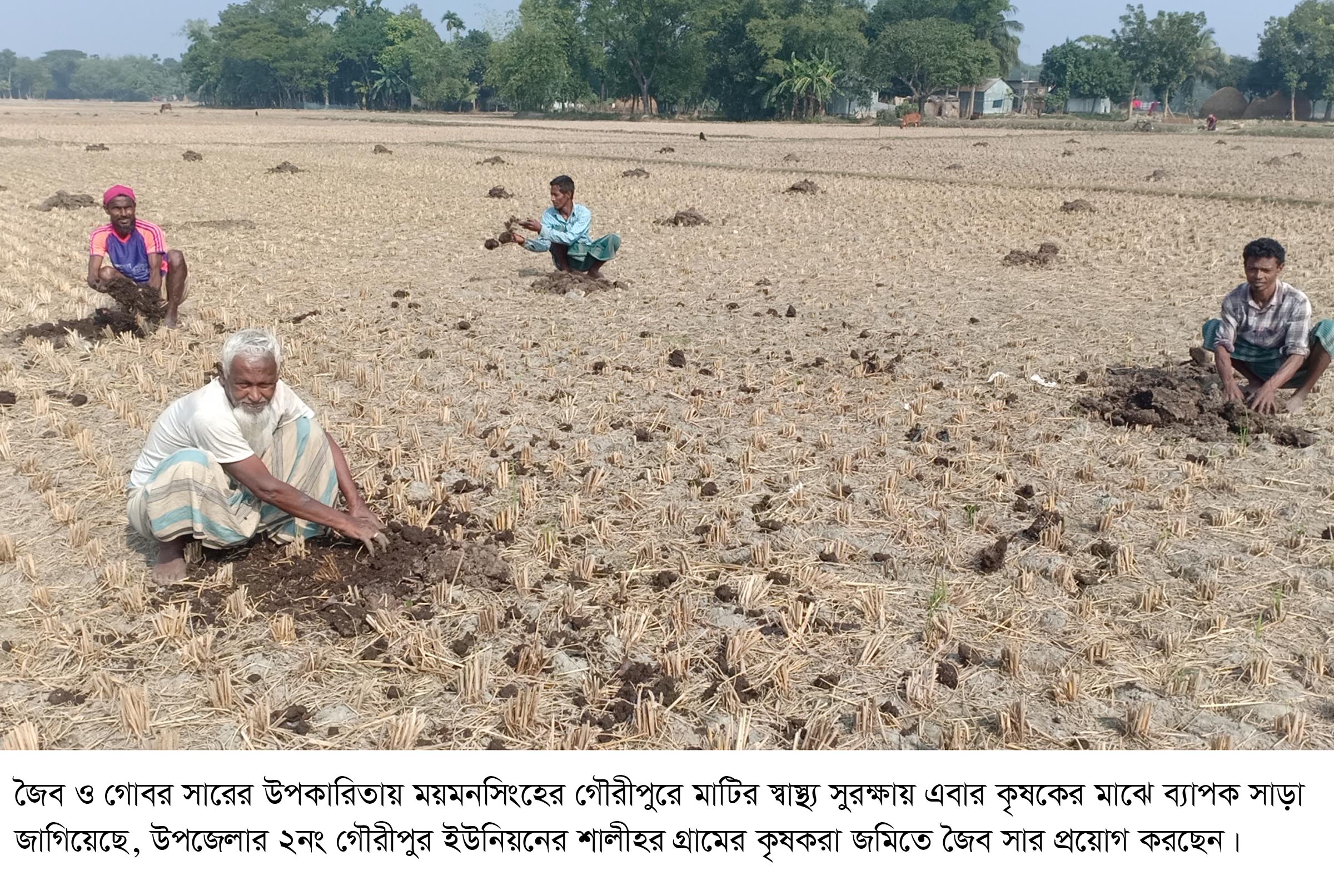 মোখলেছুর রহমান, গৌরীপুর প্রতিনিধি:মাটির স্বাস্থ্য সুরক্ষায় ময়মনসিংহের গৌরীপুরে এবার কৃষকের মাঝে জৈব ও গোবর সার ব্যাপক সাড়া জাগিয়েছে। আমন ধান কাটা শেষে বোরো বীজতলা তৈরির সঙ্গে চলছে ফসলি জমির উর্বরতা বৃদ্ধির কাজও। যেদিকেই চোখ যায়, জৈব, কম্পোস্ট ও গোবর সারের কালো কালো ছোট ছোট টিবির দেখা মিলছে।