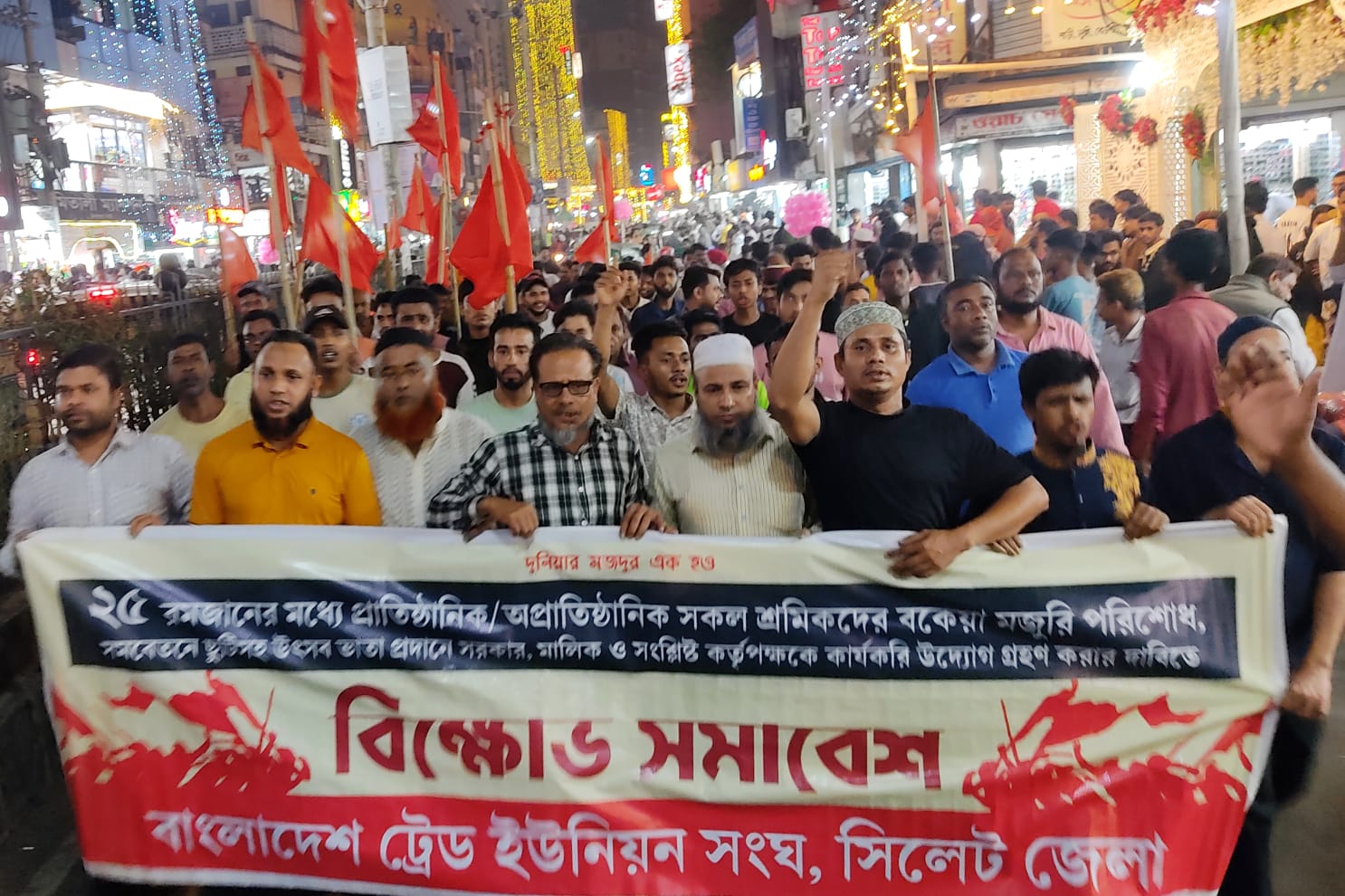ঈদ বোনাসের দাবিতে সিলেটে ট্রেড ইউনিয়ন সংঘের বিক্ষোভ-সমাবেশ