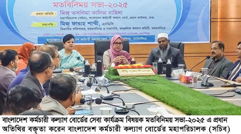 বাংলাদেশ কর্মচারী কল্যাণ বোর্ডের মহাপরিচালক (সচিব) তাসলিমা কানিজ নাহিদা বলেছেন, কল্যাণ বোর্ডকে একটি আয়বর্ধক ও কার্যকর প্রতিষ্ঠান হিসেবে গড়ে তুলতে হবে। কর্মচারীদের দক্ষতা বৃদ্ধির জন্য প্রশিক্ষণ এবং বোর্ডের প্রশাসনিক ও আর্থিক সক্ষমতা বাড়ানো জরুরি। আমরা ইতোমধ্যে কল্যাণ কর্মকর্তাদের কার্যক্রমকে সক্রিয় করেছি এবং সরকারি কর্মচারীদের জন্য সব বিভাগে আঞ্চলিক কর্মচারী হাসপাতাল প্রতিষ্ঠার কার্যক্রম চলছে। বৃহস্পতিবার (২৭ নভেম্বর) ময়মনসিংহ সিটি কর্পোরেশনের শহীদ শাহাবুদ্দিন মিলনায়তনে বাংলাদেশ কর্মচারী কল্যাণ বোর্ড, বিভাগীয় কার্যালয় কতৃক আয়োজিত বাংলাদেশ কর্মচারী কল্যাণ বোর্ডের সেবা কার্যক্রম বিষয়ক মতবিনিময় সভায় প্রধান অতিথির বক্তৃতায় তিনি এসব কথা বলেন।