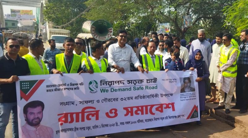 কিশোরগঞ্জে নিরাপদ সড়ক চাই এর ৩২তম প্রতিষ্ঠা বার্ষিকী উপলক্ষে র্যালি ও সমাবেশ