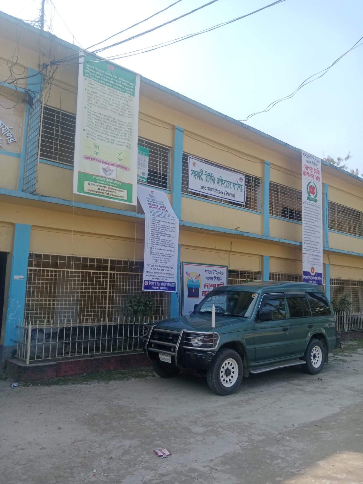 ঈশ্বরগঞ্জ পৌর বাজারের চৌরাস্তায়, ব্যানার টানানো হয়েছে, যেখানে লেখা আছে, “গণভোট” ২০২৬, সংসদ নির্বাচন পরিবর্তনের চাবি আপনার হাতে ১২ ফেব্রুয়ারী ২০২৬ তারিখে আপনার ভোটটি আপনি দিয়ে নির্ধারণ করুন আপনি কেমন বাংলাদেশ চান।