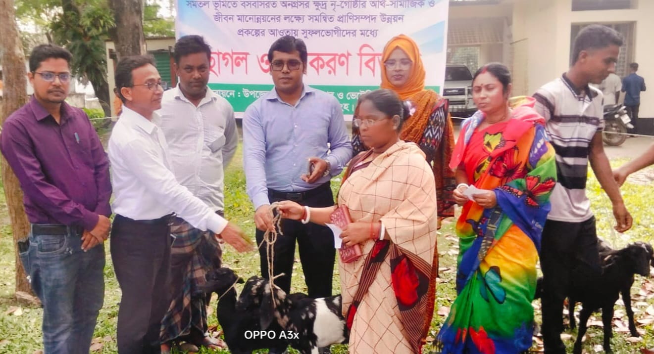 উপজেলা প্রাণিসম্পদ কর্মকর্তা ডাঃ মতিউর রহমান বলেন, “সমতলভূমির অনগ্রসর ক্ষুদ্র নৃ-গোষ্ঠির ৭৫ জন সুফলভোগী পরিবারের মাঝে দুটি করে ছাগলসহ প্রয়োজনীয় উপকরণ সরবরাহ করা হয়েছে। এতে তারা নিজেদেরকে স্বাবলম্বী করে গড়ে তুলতে পারবে। আমরা নিয়মিত তদারকির মাধ্যমে এসব ছাগলের দেখভালসহ প্রয়োজনীয় চিকিৎসা সেবা প্রদান করবো।