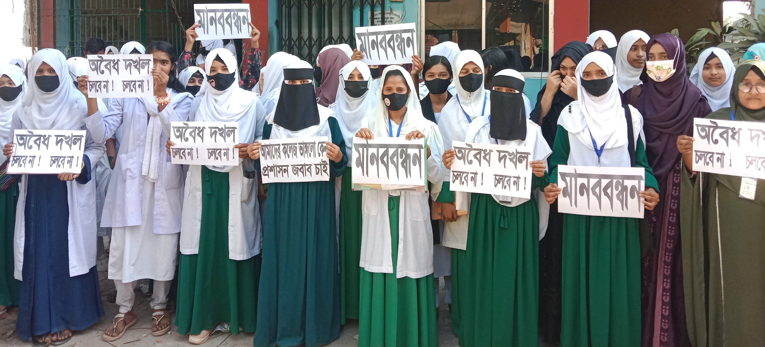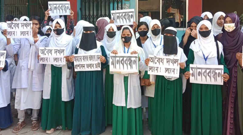 তারাকান্দায় মহিলা কলেজের পুরাতন ক্যাম্পাস বিক্রির প্রতিবাদে মানববন্ধন ও বিক্ষোভ
