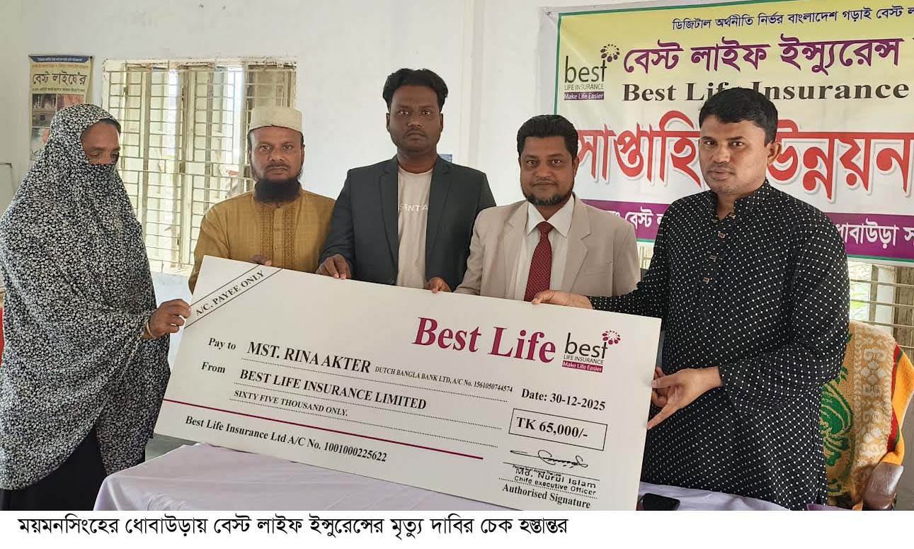 ধোবাউড়ায় বেস্ট লাইফ ইন্সুরেন্সের মৃত্যু দাবি চেক হস্তান্তর