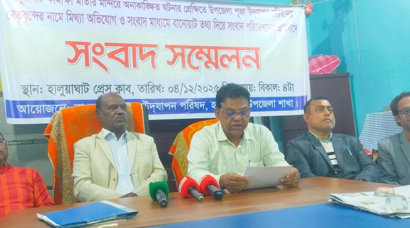 মিথ্যা মামলার প্রতিবাদে হালুয়াঘাটে পূজা উদযাপন পরিষদের সংবাদ সম্মেলন