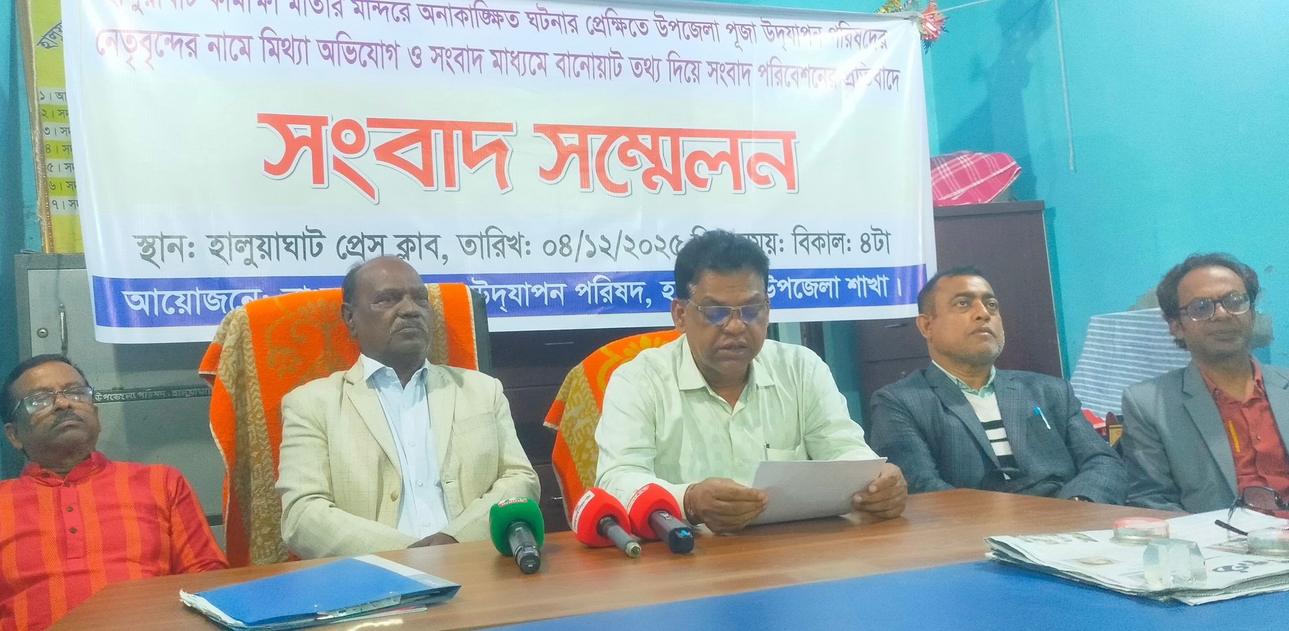 মিথ্যা মামলার প্রতিবাদে হালুয়াঘাটে পূজা উদযাপন পরিষদের সংবাদ সম্মেলন