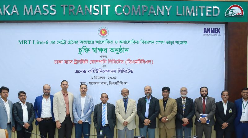 ঢাকা প্রতিনিধি: ঢাকার সকালের বাতাসে তখনও শীতের হাওয়া মিশে আছে। ঠিক সে সময়টায় ১ ডিসেম্বর সকালে —ঢাকা ম্যাস ট্রানজিট কোম্পানি লিমিটেড (ডিএমটিসিএল) ও বিজ্ঞাপনী সংস্থা এনেক্স কমিউনিকেশনস লিমিটেডের মধ্যে মেট্রোরেলের এর এক্সক্লুসিভ ইনসাইড ব্র্যান্ডিং সার্ভিসেস বিষয়ক একটি চুক্তি স্বাক্ষরিত হয়েছে। ডিএমটিসিএল কার্যালয়ের সম্মেলন কক্ষে অনুষ্ঠিত এই তাৎপর্যপূর্ণ আয়োজন দুই প্রতিষ্ঠানের পারস্পরিক সহযোগিতার একটি নতুন অধ্যায়ের সূচনা করেছে।